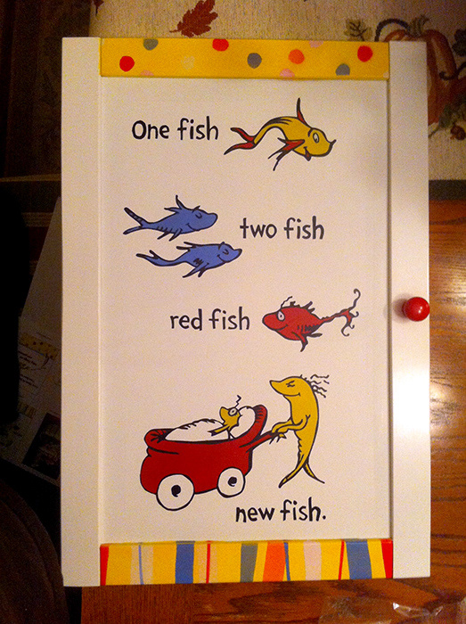 A friend asked me to airbrush this door which attaches to a changing table/crib for his son's newborn baby. Happy to do it.